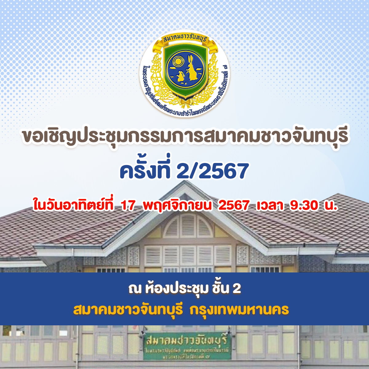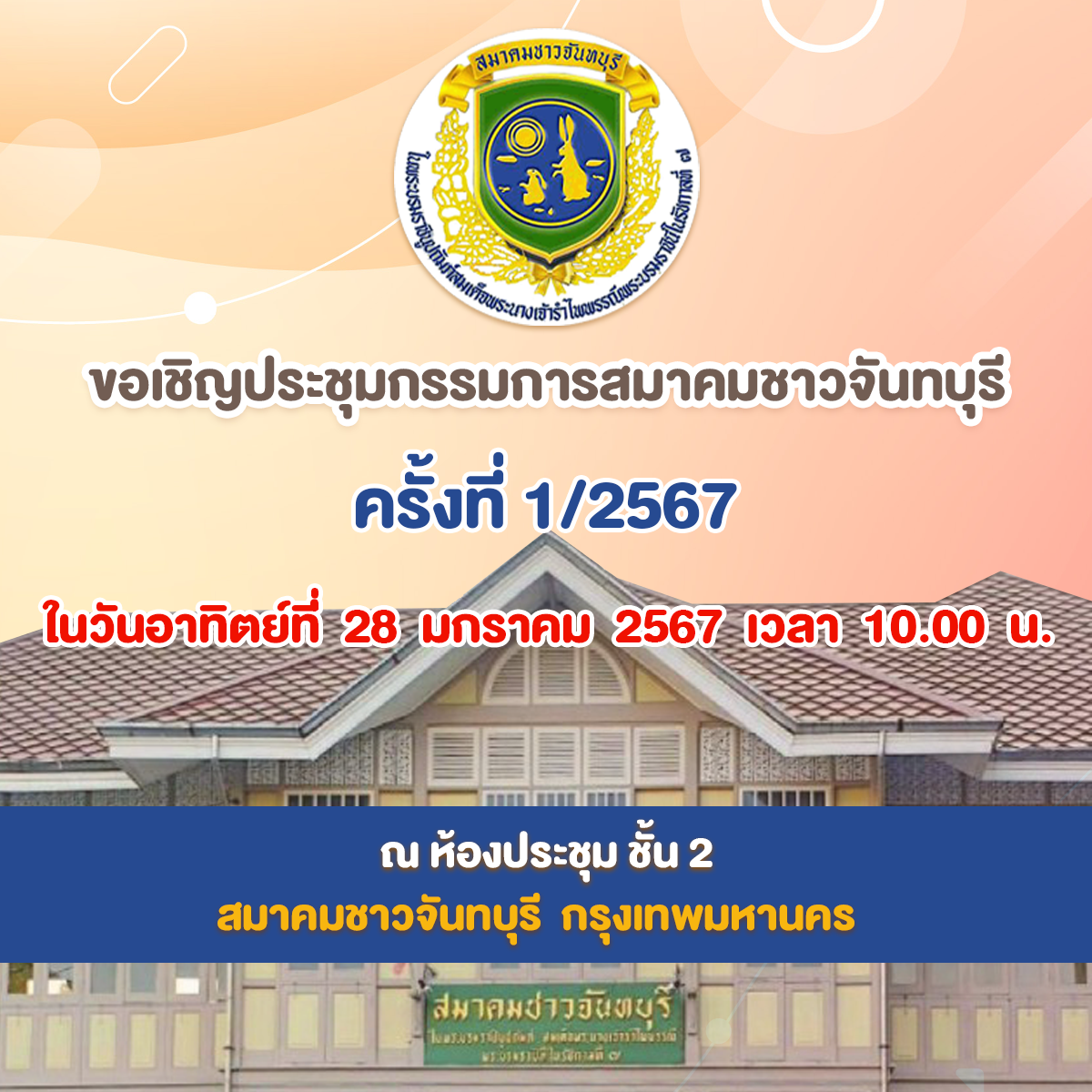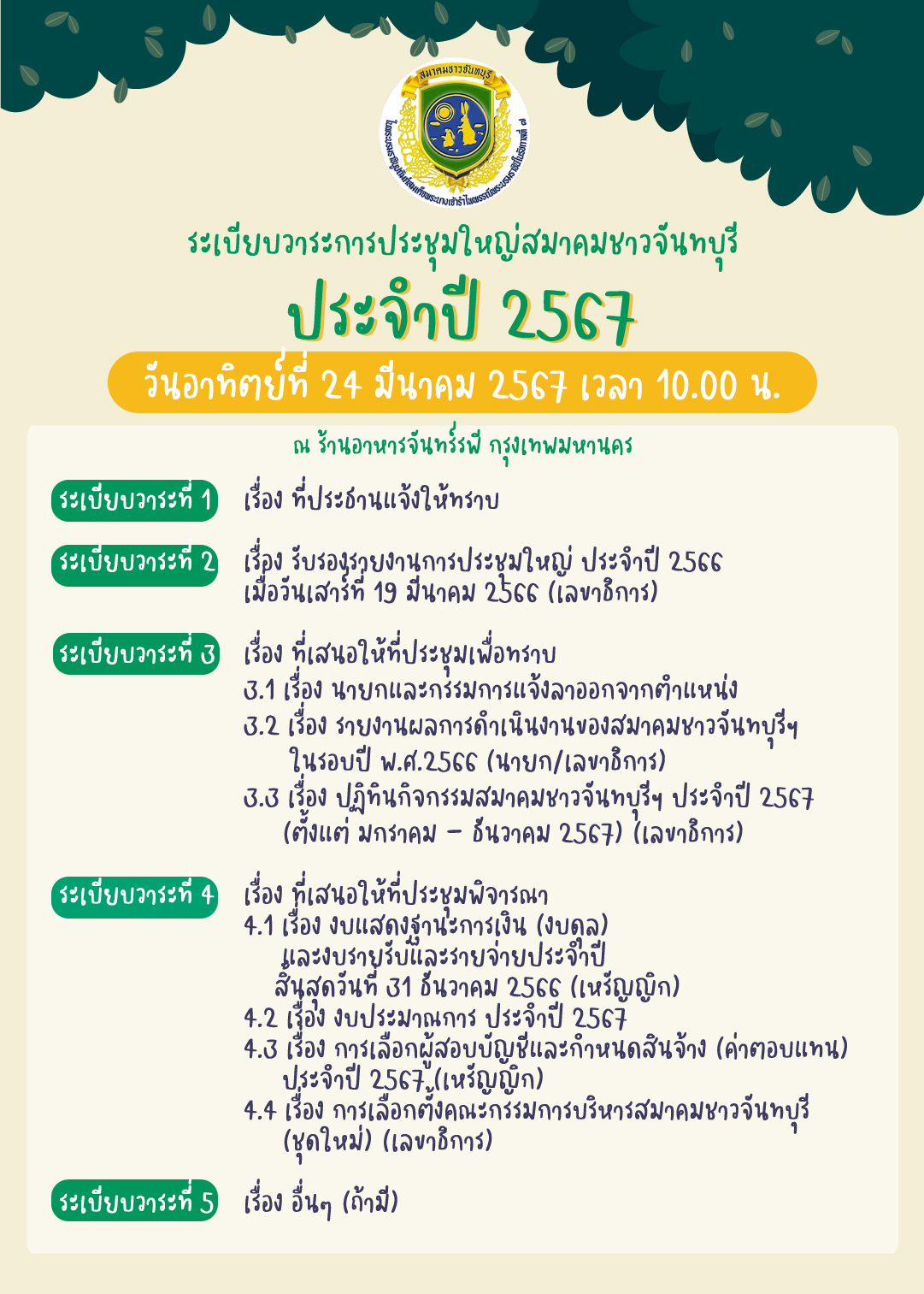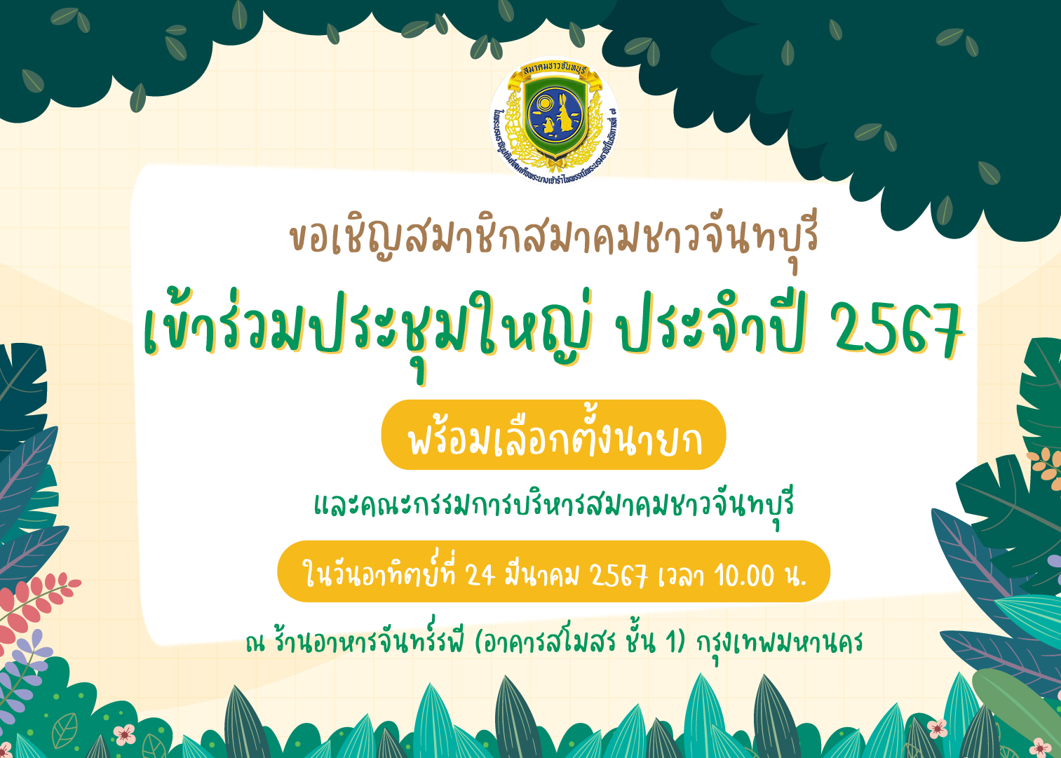 ขอเรียนเชิญเข้าร่วมประชุมใหญ่สมาคมชาวจันทบุรี ประจำปี 2567